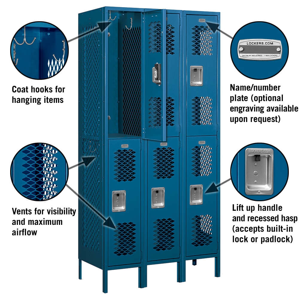 Locker Metálico Ventilado simple de dos puertas de color azul de 198 cms de alto, 30.5 cms de ancho y 30.5 cms de fondo.