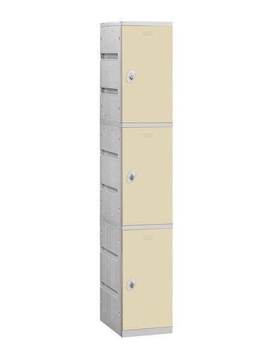 Locker plástico triple de cuatro puertas de color beige de 188 cms de alto, 32 cms de ancho y 46 cms de fondo.